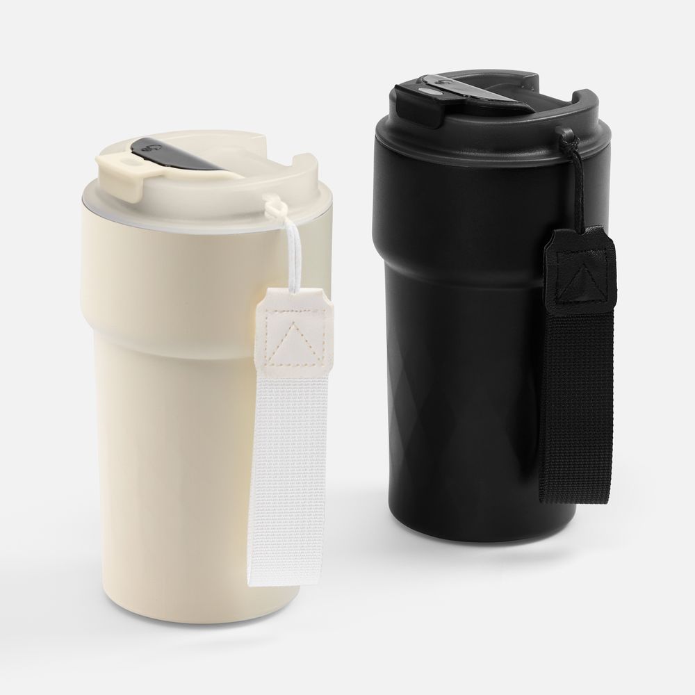 Смарт-термостакан в металлическом корпусе с легким рельефом.