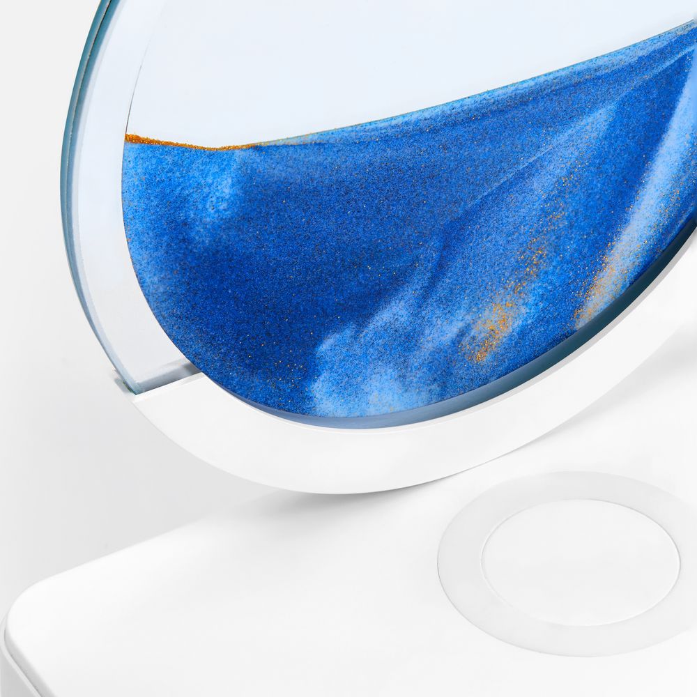 Sandflow — это одновременно и интерьерный светильник, и песочная картина-антистресс, и станция быстрой беспроводной зарядки для телефона.