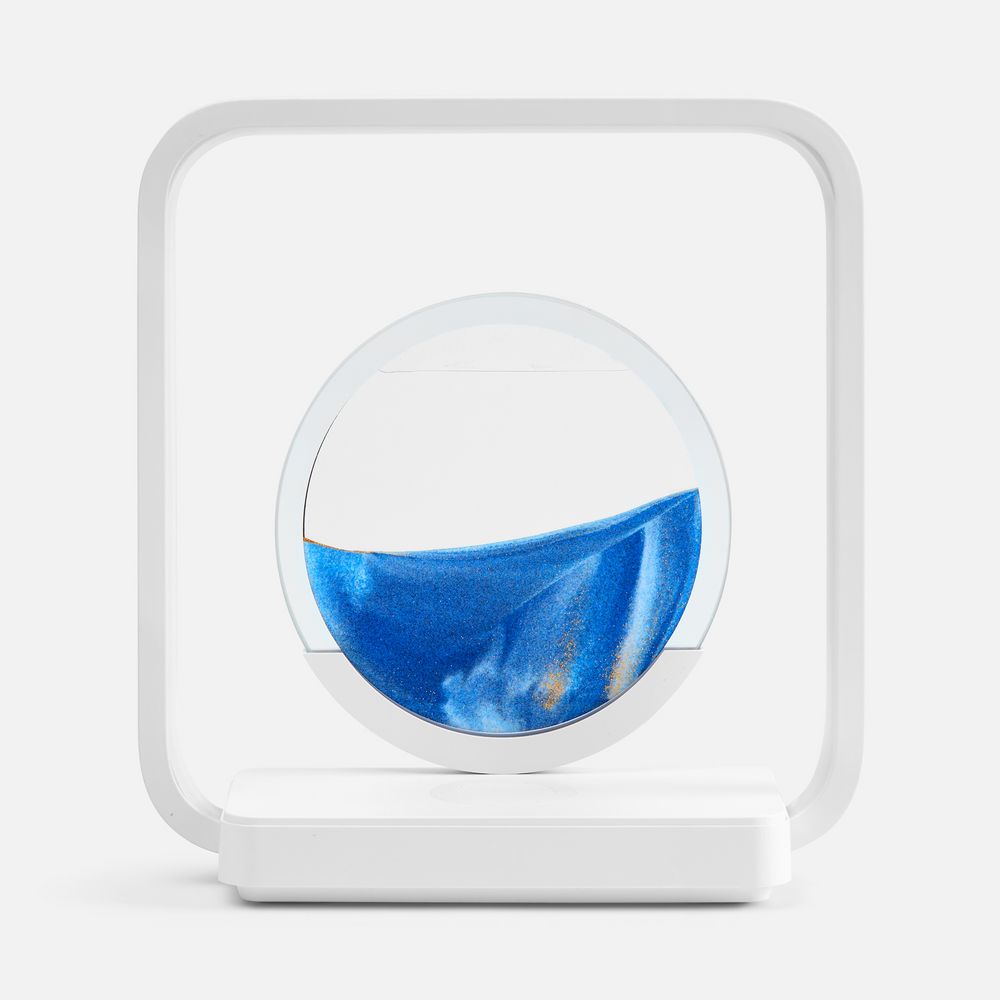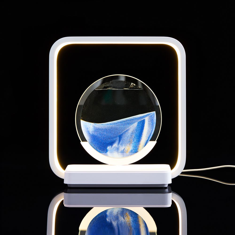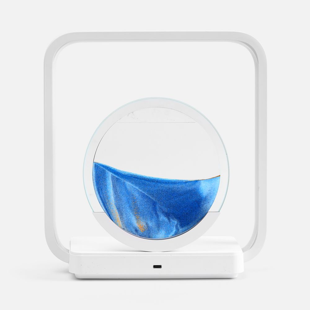 Если перевернуть круглую стеклянную вставку с песком, можно расслабленно понаблюдать за плавным перемещением песчинок в жидкости. Такой полезный для глаз антистресс с легкостью успокоит во время напряженного рабочего дня. Регулируемая подсветка внутри рамки создает еще больший акцент на картине, превращая Sandflow в стильный точечный источник света.