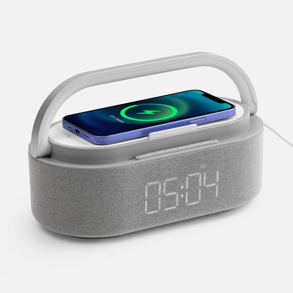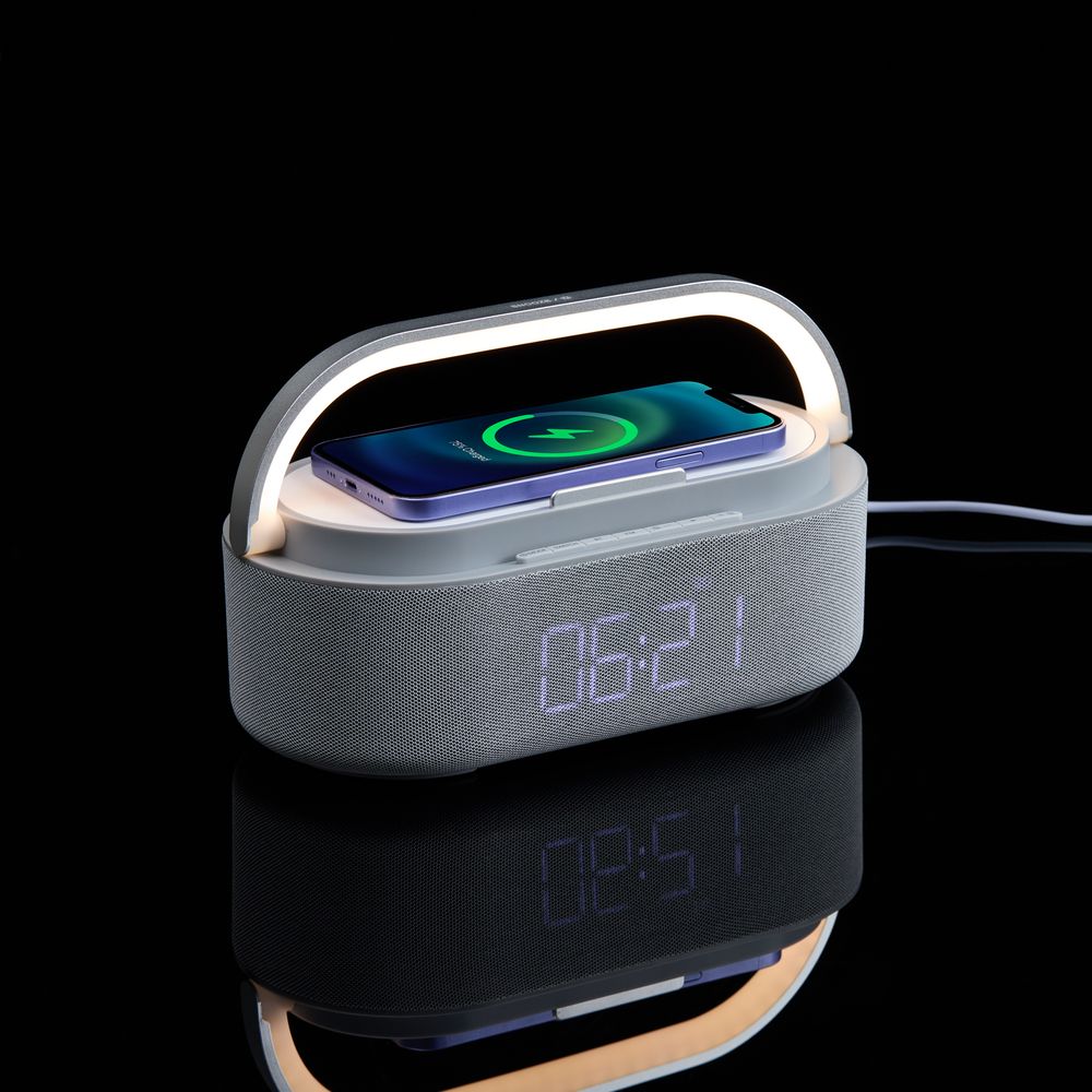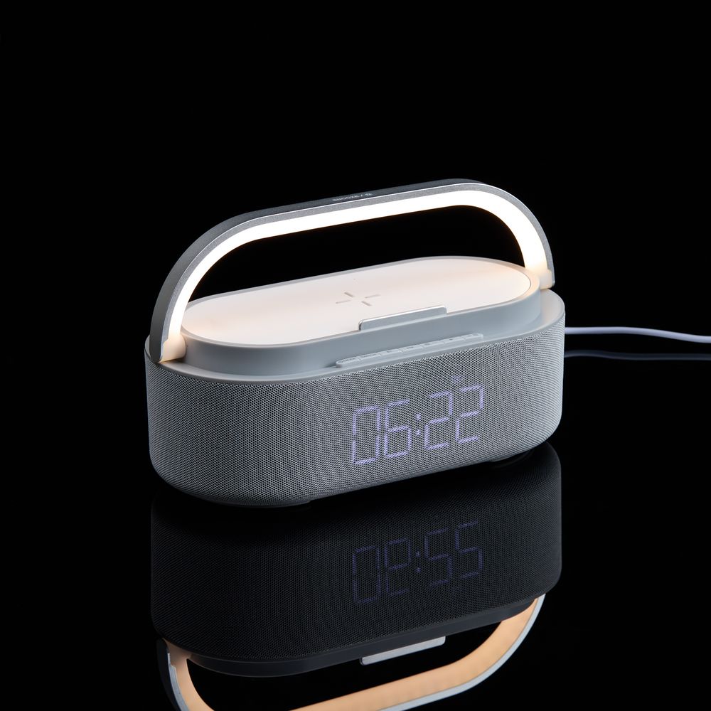 Колонка с часами и беспроводной зарядкой Veske ver.2, серая