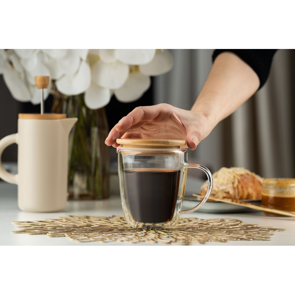 Кружка с двойными стенками Kupla подходит для подачи как горячих, так и холодных напитков. Благодаря бамбуковой крышке напиток в кружке долго останется нужной температуры.