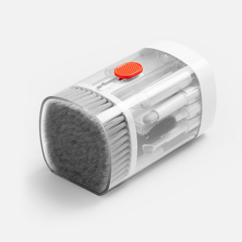 - В комплекте: большая щетка, салфетка для ухода за дисплеем, контейнер для жидкости, пластиковый пинцет, щетка с жесткой щетиной, щетка с мягкой щетиной, чистящее перо со щеткой для наушников, насадка для чистки кейса от наушников, ершик для чистки кейса от наушников, щетка с короткой щетиной, щетка с наклонной щетиной, двусторонняя насадка для чистки разъемов зарядки, двусторонняя насадка для чистки камеры, инструмент для продувки, дуговой пинцет, ключ для отсека SIM-карты, инструмент для извлечения поврежденных ключей