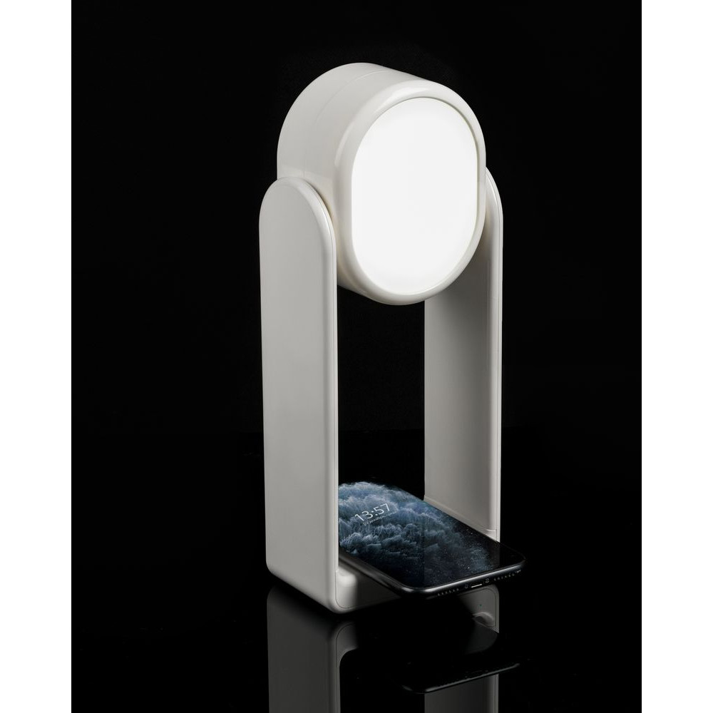 Настольная лампа с зеркалом и беспроводной зарядкой Tyro, белая