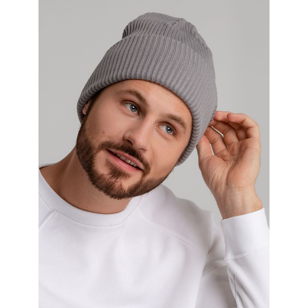 Двухслойная шапка фактурной вязки с отворотом.