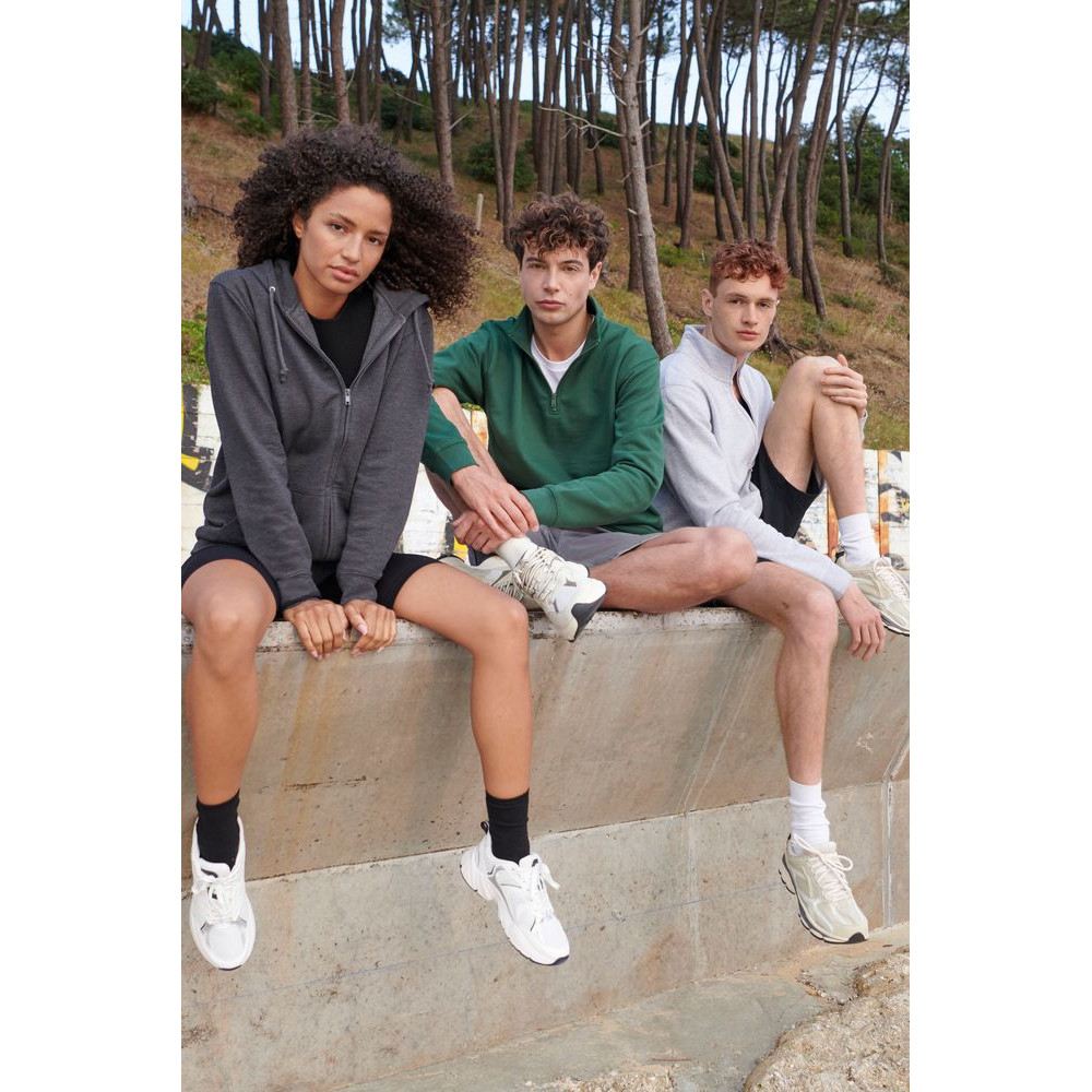 Толстовка унисекс на молнии и с капюшоном выполнена из хлопка с добавлением переработанного полиэстера.