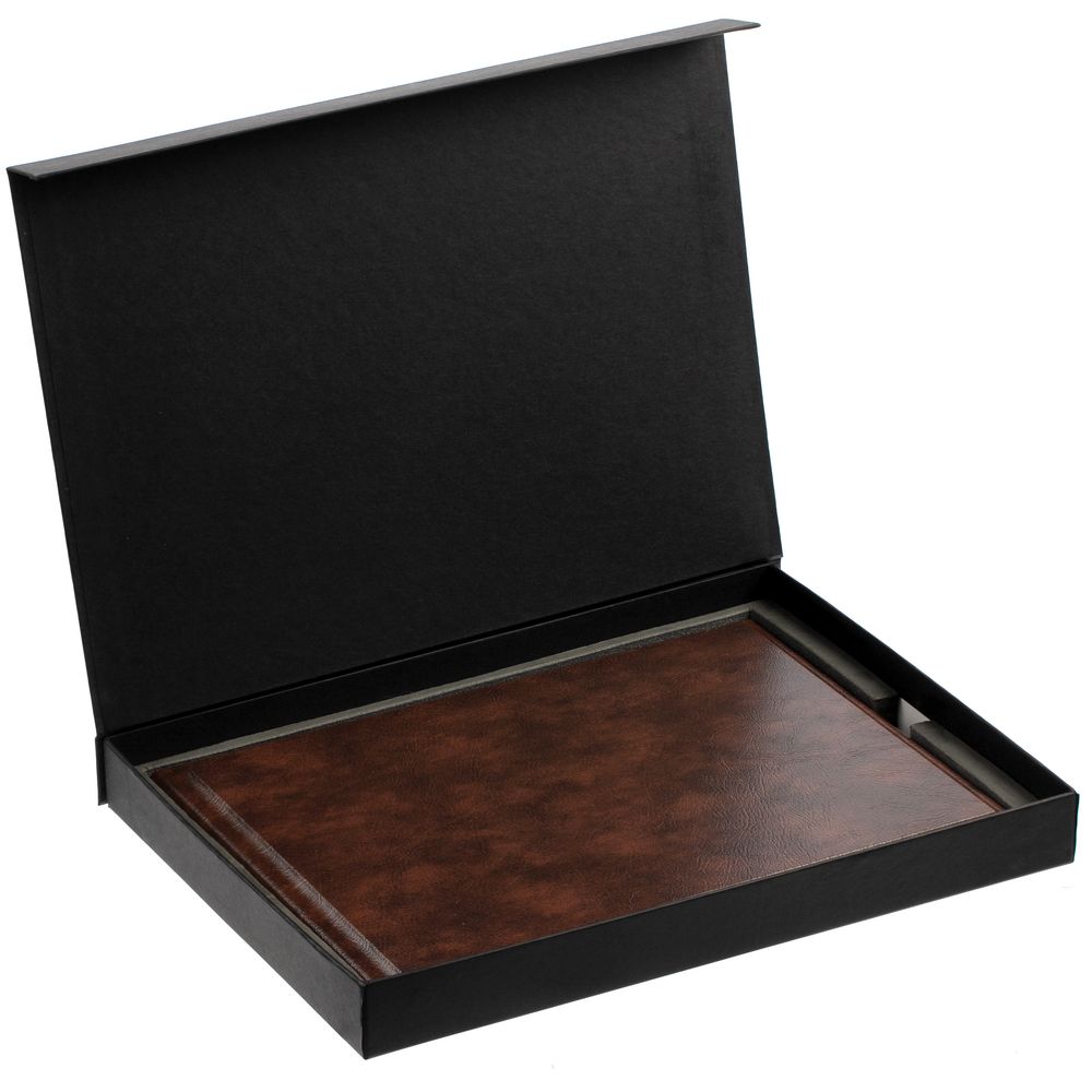 Коробка с ложементом для плакеток и ежедневников формата А4.Коробка с крышкой на магните и несъемным ложементом выполнена из переплетного картона, кашированного дизайнерской бумагой Malmero.