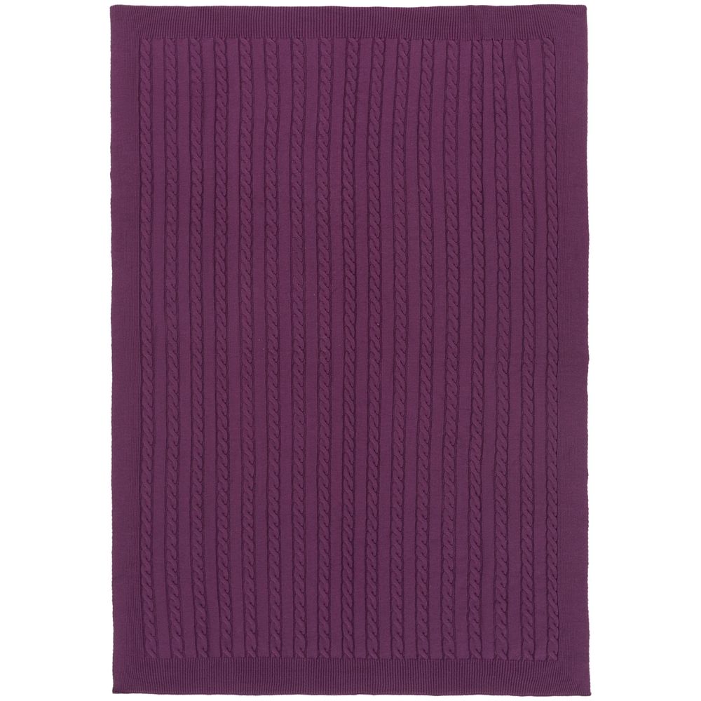 Модель: однотонный плед с фактурной вязкой, которая позволяет сделать его воздушным и объемным. Чередуя различные типы петель на гладком полотне, можно вывязать любую графику — логотип, текст, товарный знак.