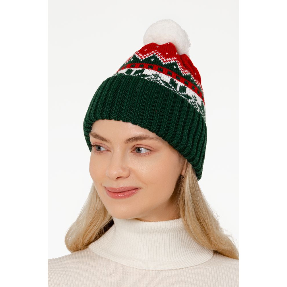 Модель: шапка с жаккардовым узором в 2-3 цвета и отворотом в 1 цвет, помпон 8 см, крупная петля. Шапка некроеная, с макушкой на стяге, которая всегда будет однотонной. Узор максимально простой и графичный, без сложных мелких деталей.