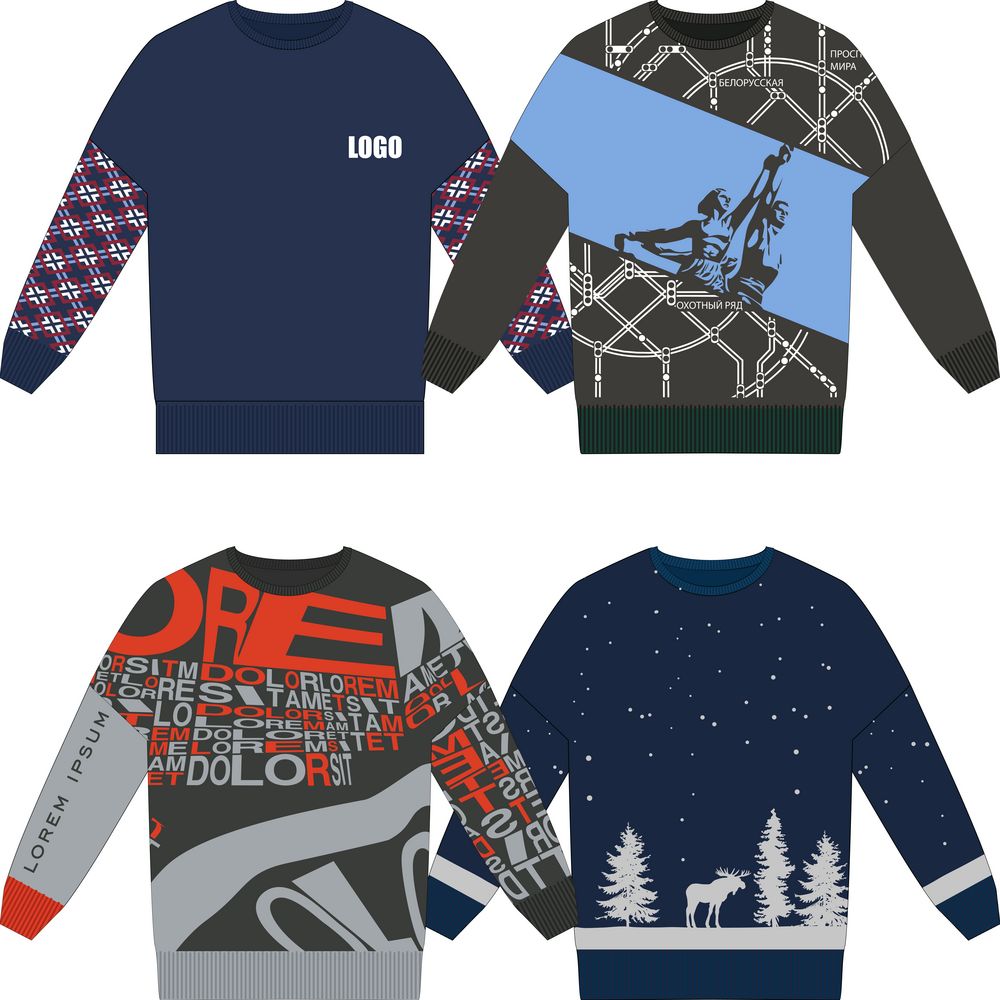 Дополнительные опции: высокий ворот, опцию можно выбрать в форме расчета нанесения. Разрезы по бокам свитера. Можно добавить без увеличения стоимости.