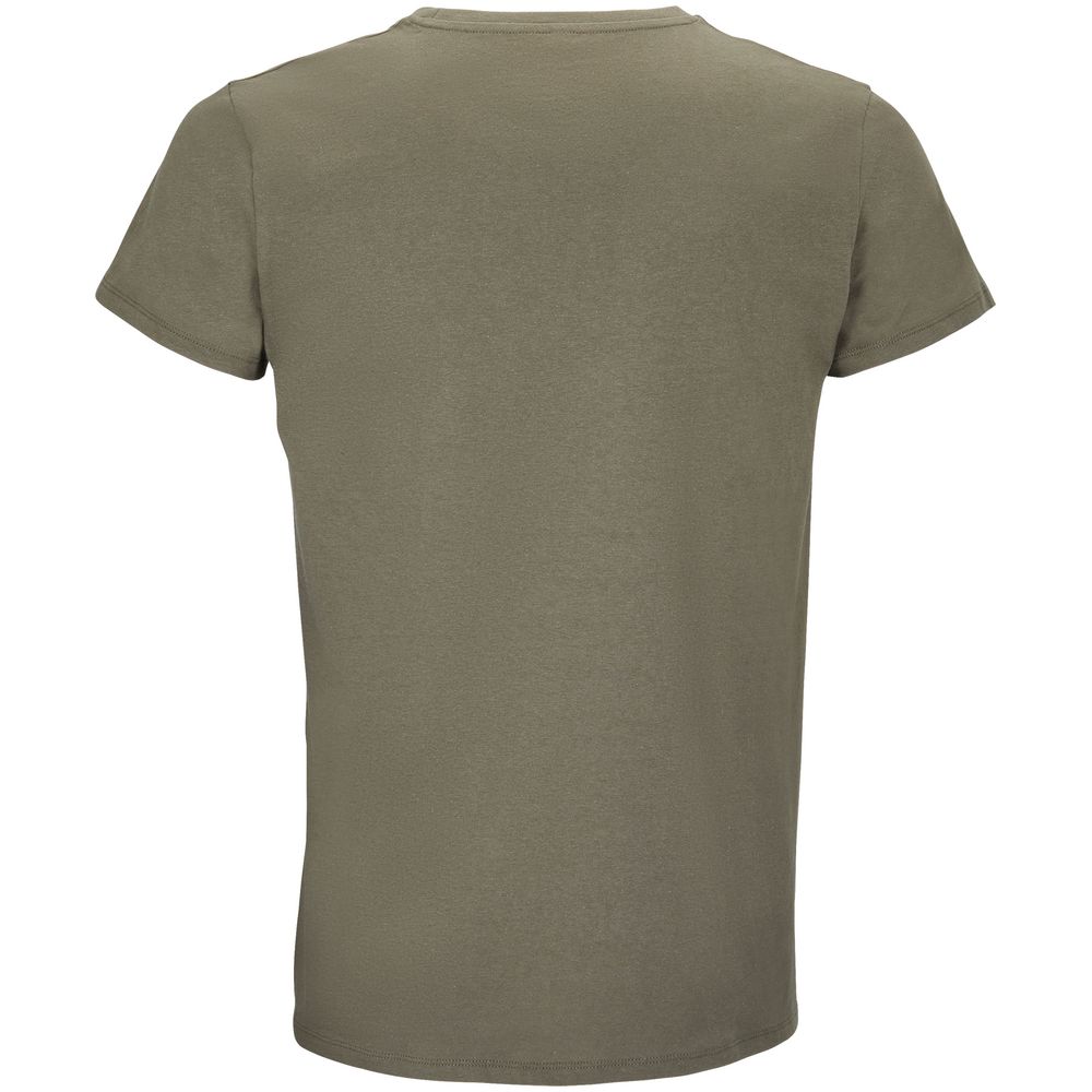 Бесшовная футболка унисекс выполнена из смеси обычного хлопка с переработанным.