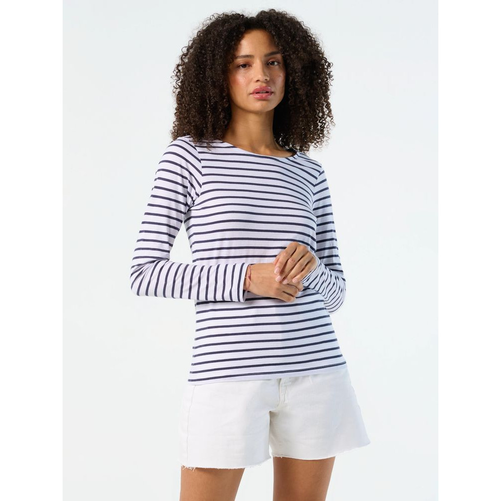 Кроеная футболка с длинными рукавами и круглым воротом из 100% гребенного хлопка.