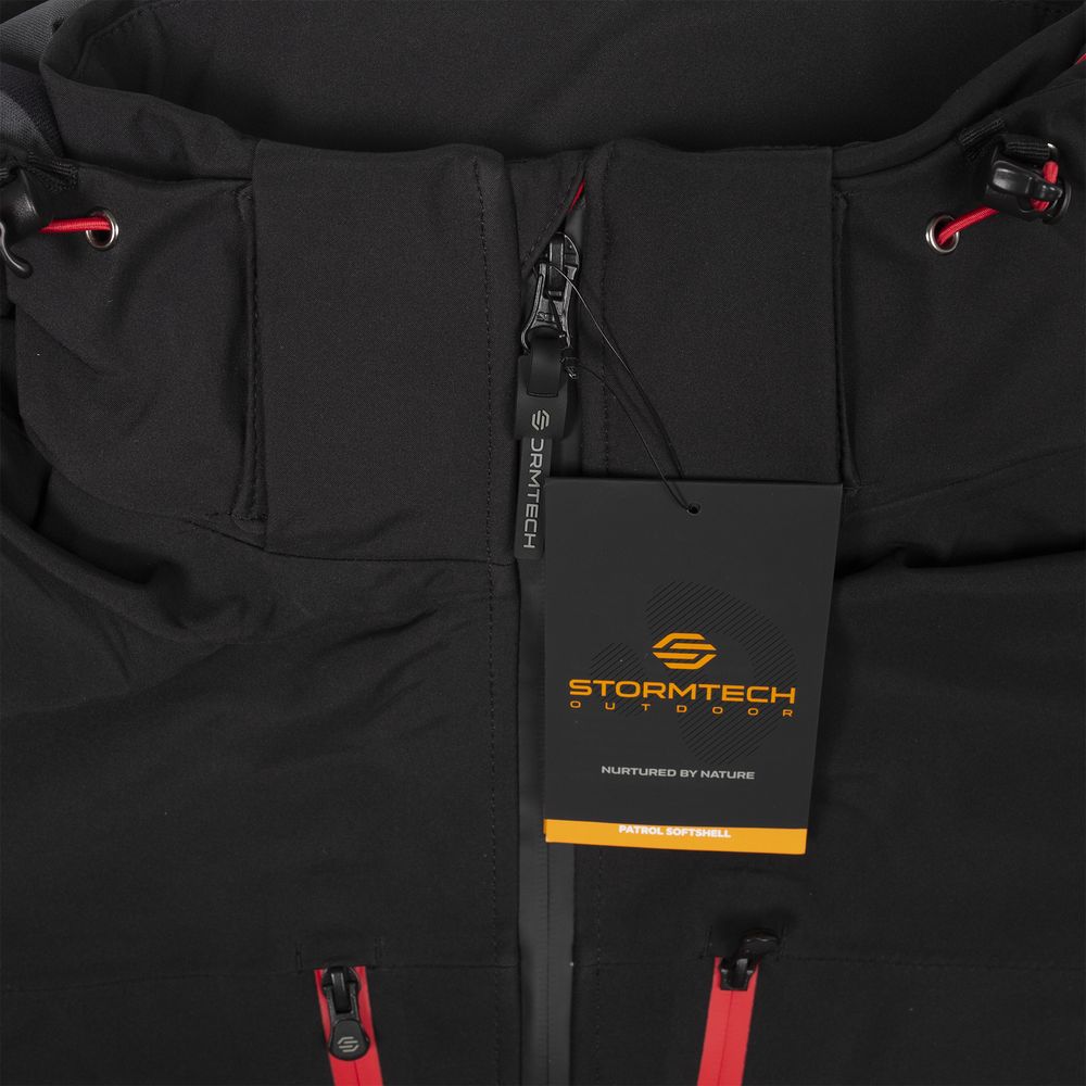 Куртка софтшелл мужская Patrol, черная с красным