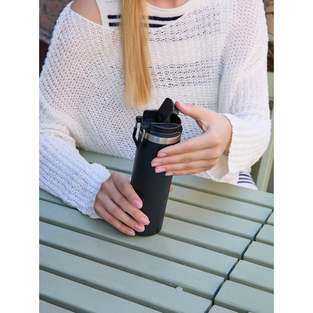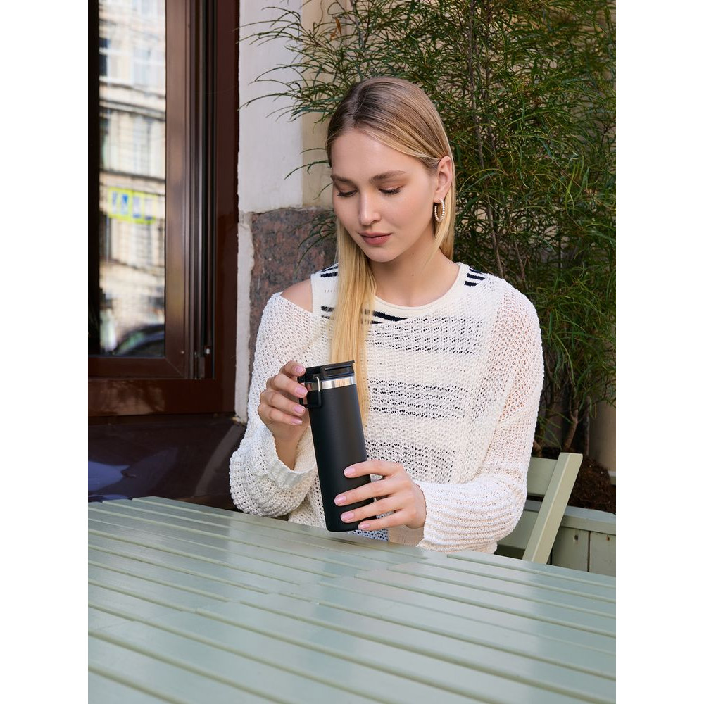 Лаконичный дизайн с ровным цилиндрическим корпусом — специально для круговой печати и гравировки, достаточный объем и привлекательная деталь в виде подвижной квадратной ручки для переноски.
