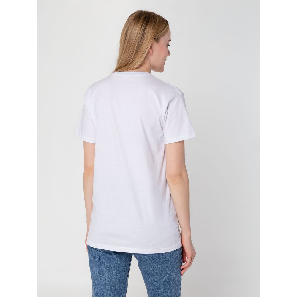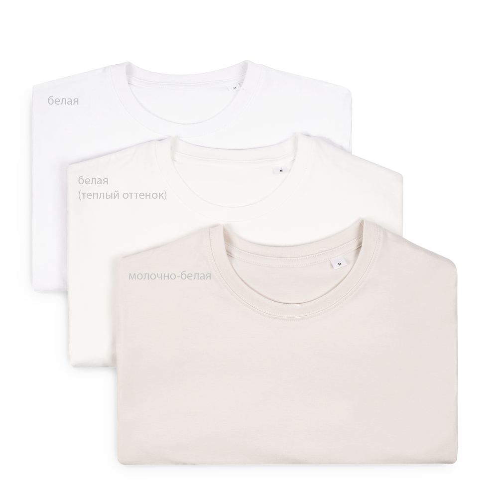 Базовая футболка унисекс прямого силуэта без боковых швов (размеры XS–4XL) или с боковыми швами (размеры 5XL–6XL).